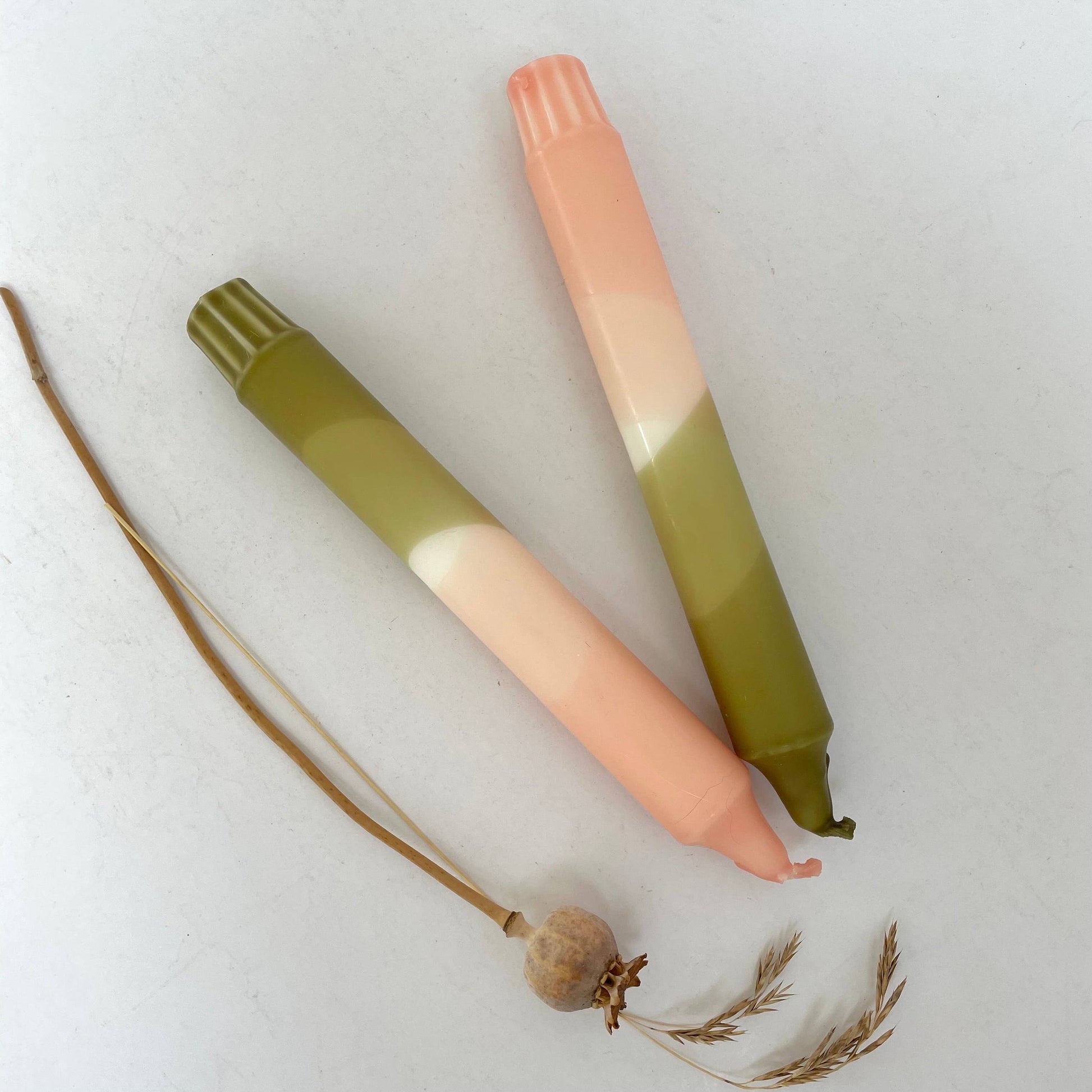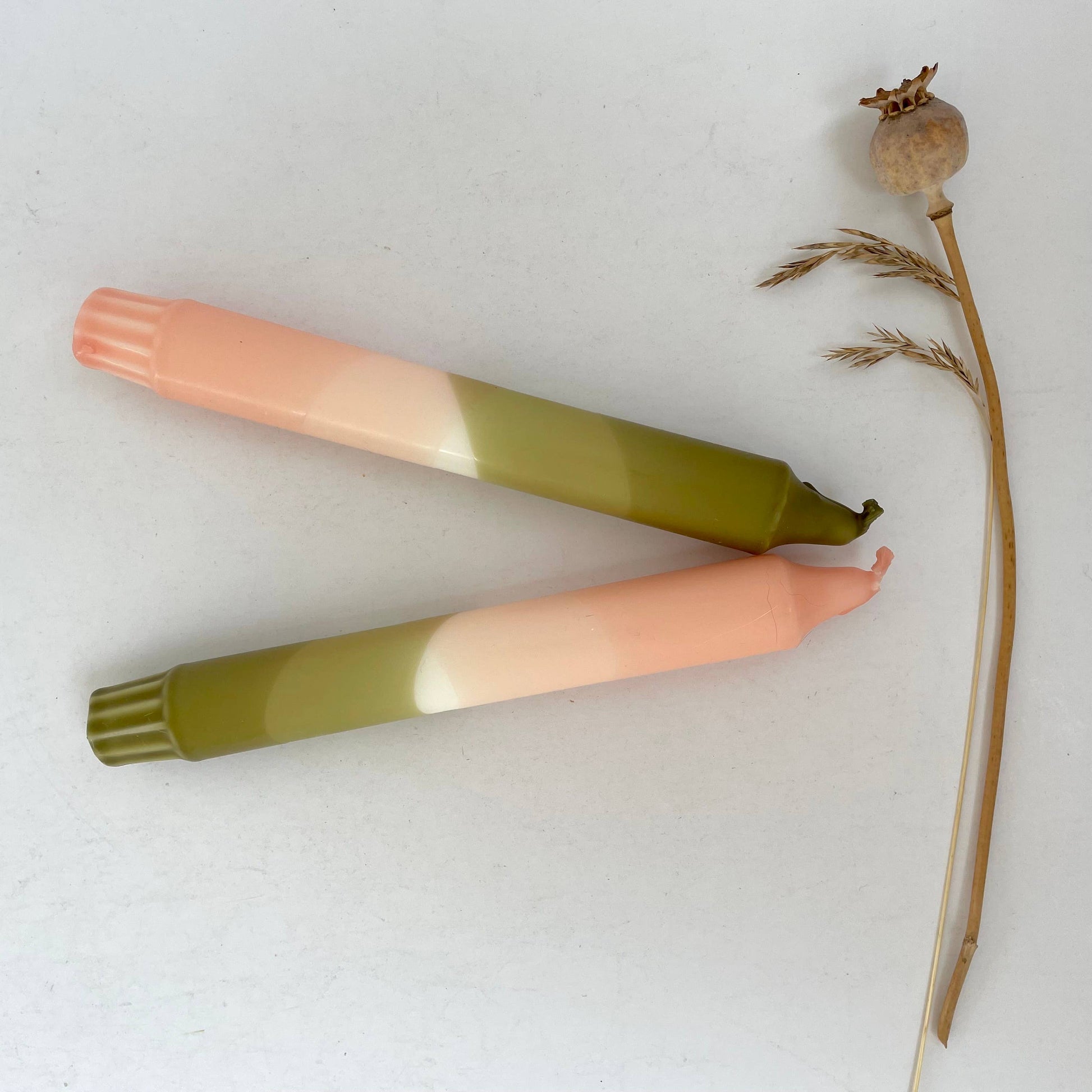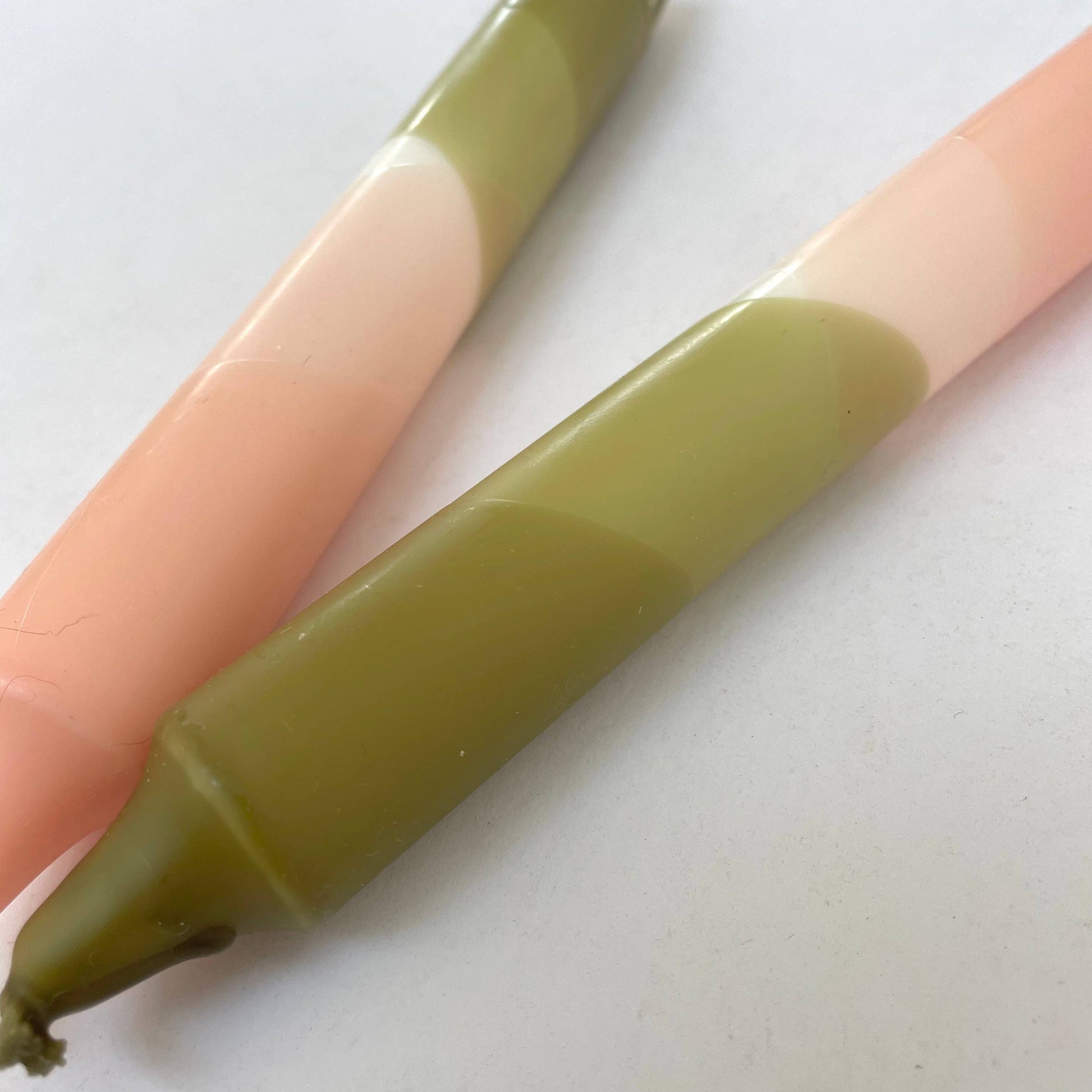 The Singing Rabbit - Blush Pink and Olive Green Dip Dyed Dinner Candles
